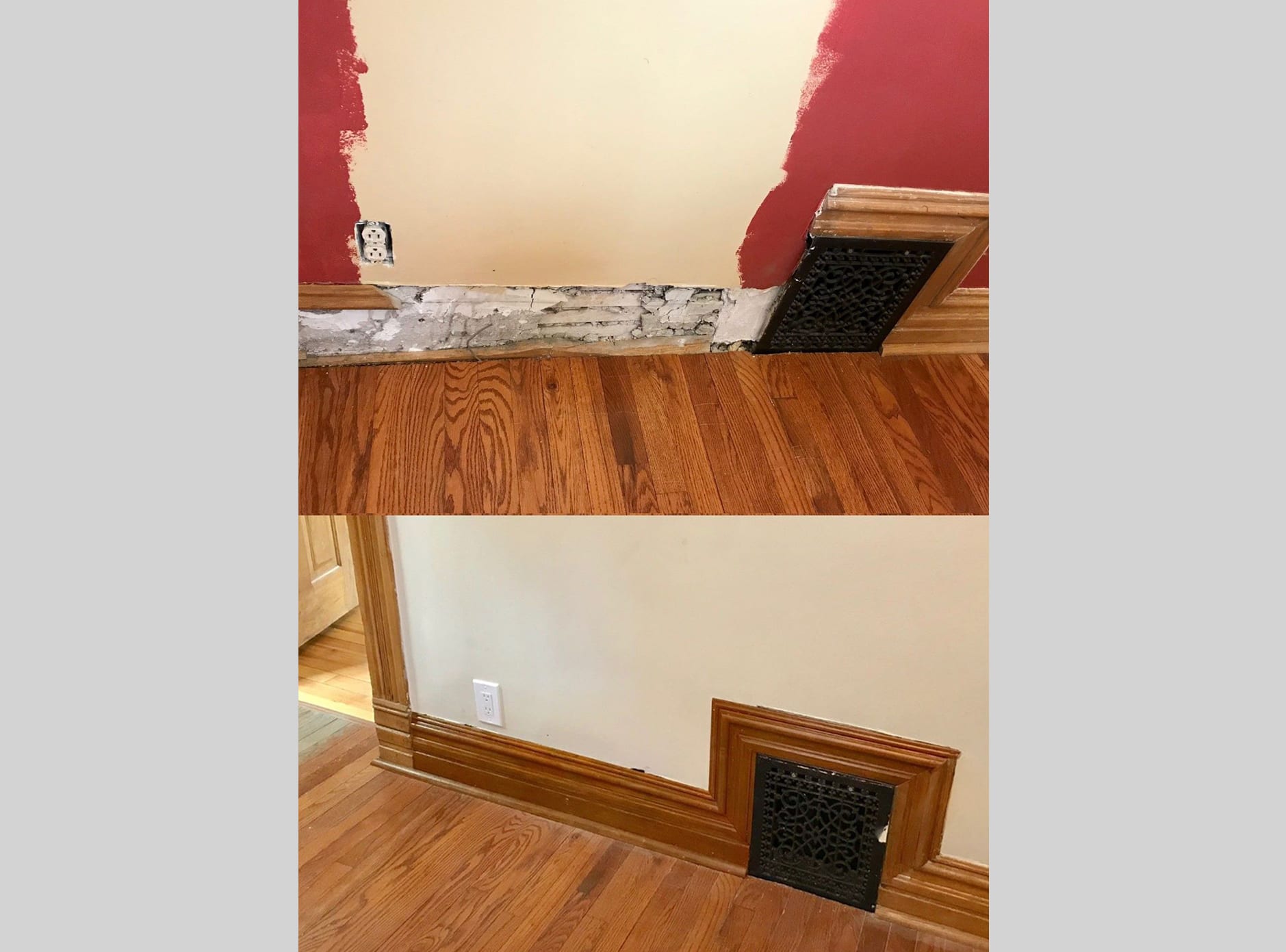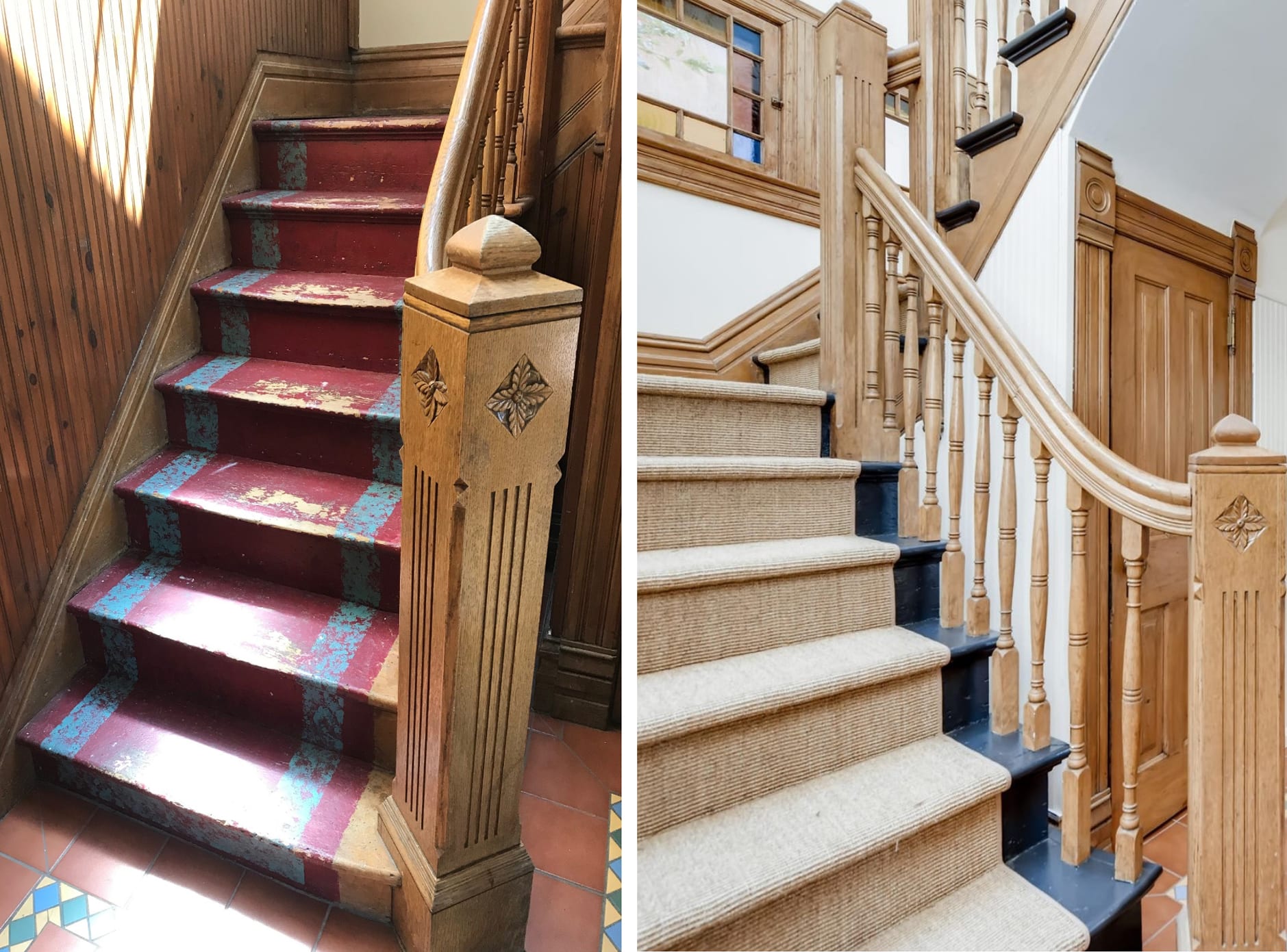 "My long-time friends and clients were ready for a downsize after 22 years of living in a remarkably intact 1890 Victorian in Capitol Hill, Denver. The house was generally in good shape but needed a major refresh. There were also a couple of problems that they’d never solved, namely a large piece of missing 12” Victorian base in the library, a failed attempt at creativity by painting an oriental motif on the front stairs, and mismatched wood floors on the second floor – a hodge podge of Victorian pine planks and 70’s era parquet. Concierge to the rescue.
